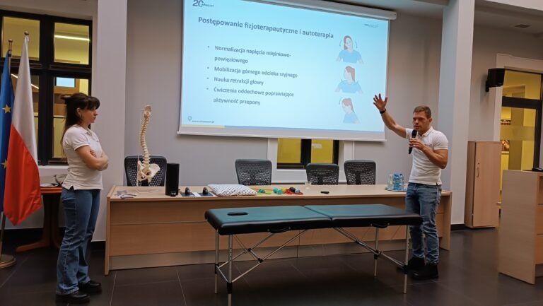 Natomiast doskonałym rozwinięciem powyższego wykładu była prezentacja rożnych technik radzenia sobie z bólem, zwłaszcza u lekarzy stomatologów, przygotowana przez fizjoterapeutę mgr. Mateusza Makulika.